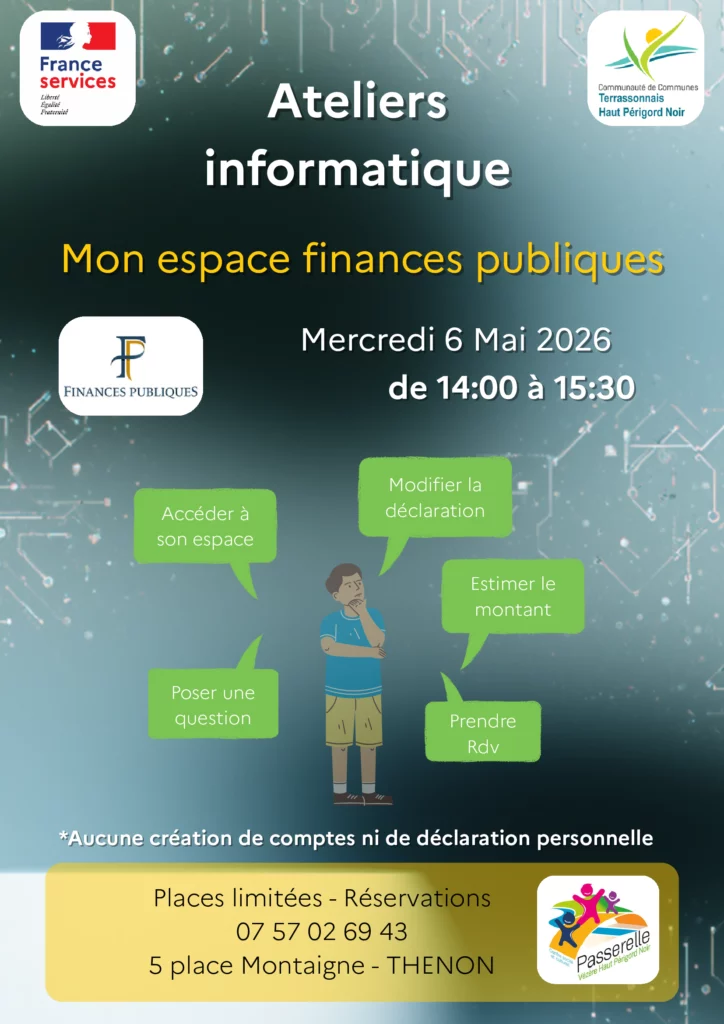France services de la Communauté de Communes Terrassonnais Haut Périgord Noir va animer un atelier supplémentaire sur la thématique « Mon espace finances publiques » à Thenon